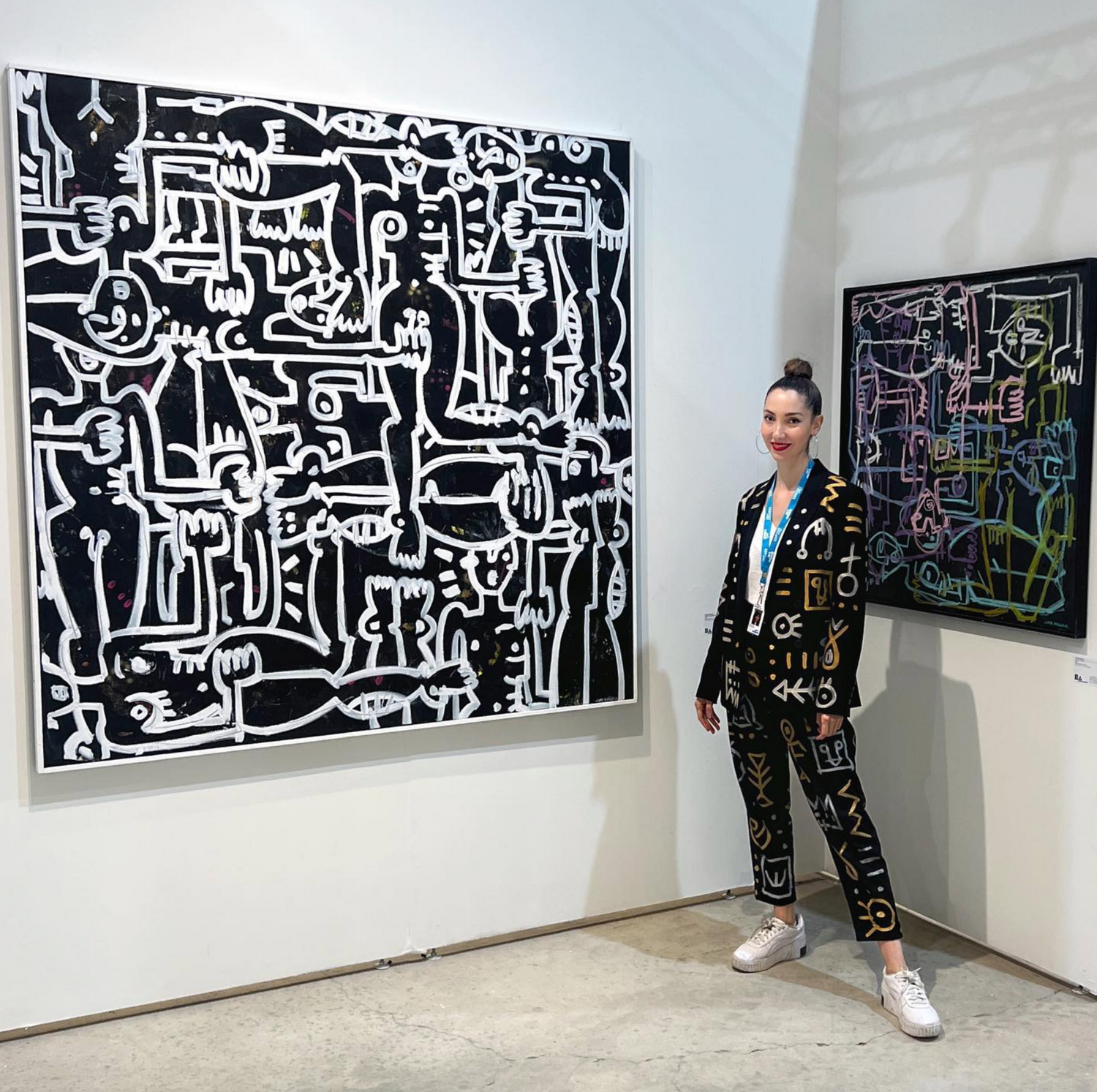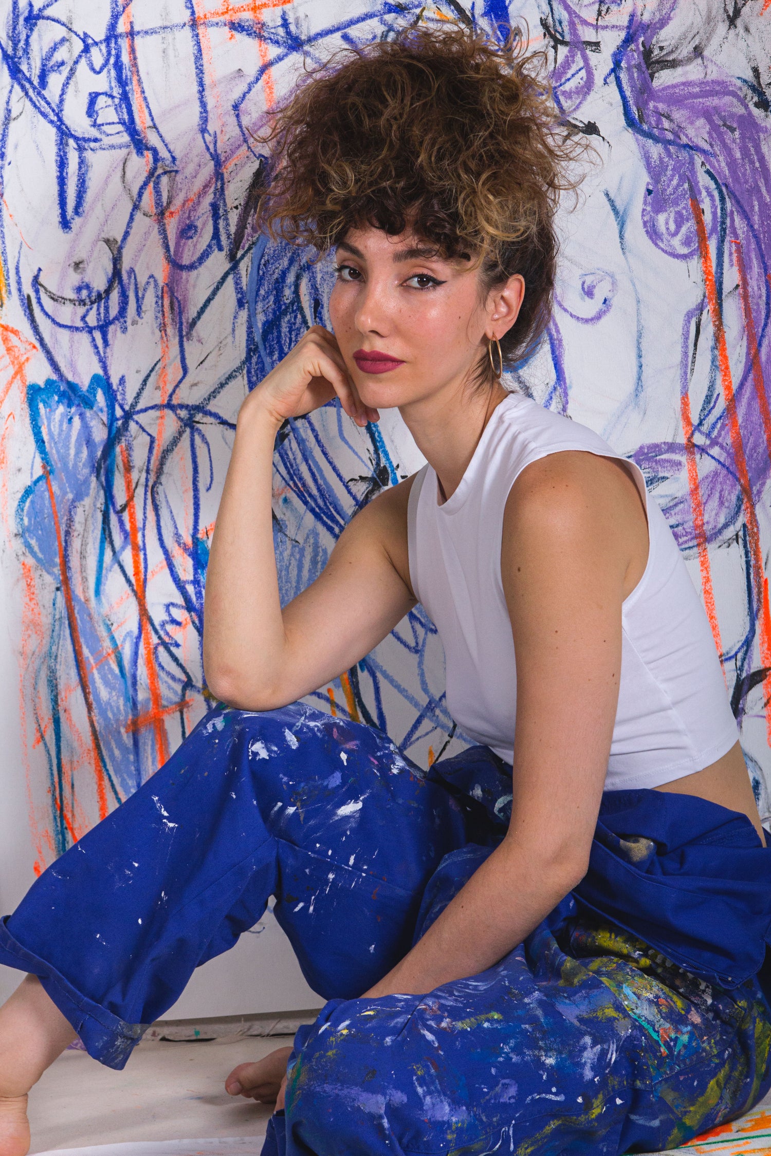 Since her first interventions in public spaces, painting walls and doing performances both in Spain and in Miami, she has been creating her own fresh and fun style that is reflective, conscious and committed at the same time. Action art, reinforced by her condition as a lover of dance full of vitality, has a lot of weight in her creations, as well as a very clear idea of the ideas and values that concern her and that she is interested in transmitting to those who approach her work. ; her characters always “bet on love, freedom and diversity”.